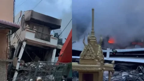 ด่วน ไฟไหม้ตึกถล่ม กลางเมืองเขมร เสียหายหนัก วันนี้