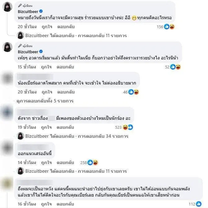 โพสต์ของเบียร์ไม่ได้หยุดเพียงแค่การคอมเมนต์ของเธอเอง เพราะแฟน ๆ และชาวเน็ตต่างเข้ามาแสดงความคิดเห็นต่ออีกมากมาย โดยหลายคนแสดงความเห็นว่า