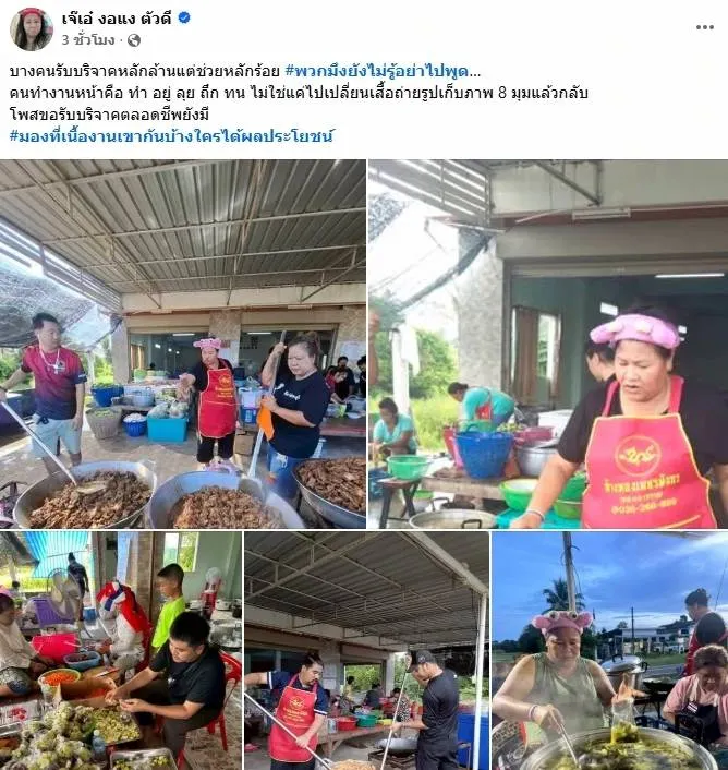 "คนทำงานหน้าคือทำอยู่ ลุย ถึก ทน ไม่ใช่แค่ไปเปลี่ยนเสื้อถ่ายรูปเก็บภาพ 8 มุมแล้วกลับโพสต์ขอรับบริจาค"