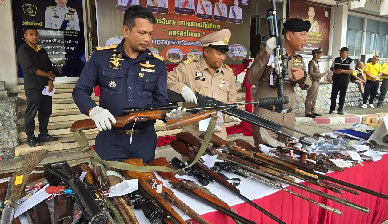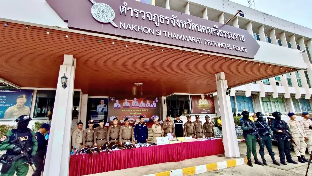 นครศรีธรรมราช นายสมชาย ลีหล้าน้อย ผู้ว่าราชการจังหวัดนครศรีธรรมราช พร้อมด้วย พล.ต.ต.เกรียงศักดิ์ นุ่นเกลี้ยง ผบก.ภ.จว.นครศรีธรรมราช และผู้กำกับสถานีตำรวจในสังกัด ร่วมแถลงผลการกวาดล้างป้องกันปราบปรามอาชญากรรม และยาเสพติดทุกประเภท ตลอดจนการขยายผลตรวจยึดทรัพย์สินตามประมวลกฎหมายยาเสพติด, ผู้เกี่ยวข้องยาเสพติด และเพื่อเป็นการตัดตอนให้ยาเสพติดลดน้อยลง ตามนโยบายป้องกันปราบปรามยาเสพติดตามนโยบายของสำนักงานตำรวจแห่งชาติ และมีการขับเคลื่อน ตามแผนปฏิบัติการ “ นครศรีโมเดล ” ในพื้นที่จังหวัดนครศรีธรรมราช ห้วงวันที่ 17 – 23 ตุลาคม 2568 ซึ่งผลการปฏิบัติในภาพรวม สามารถจับกุมคดียาเสพติด อาวุธปืนพร้อมเครื่องกระสุนปืน สามารถจับกุมผู้ต้องหา 190 ราย 192 คน แยกเป็นข้อกล่าวหาจำหน่ายจำนวน 29 ราย คนครอบครอง 97 ราย 99 คน ครอบครองเพื่อเสพ 11 ราย 11 คน เสพยาเสพติด 52 ราย 52 คนสมคบสนับสนุนจำนวน 1 ราย 1 คน จับกุมตามหมายจับคดียาเสพติด 4 หมาย ยึดยาบ้า 254,157 เม็ดไอซ์ 159 กรัม ตรวจยึดทรัพย์สินเกี่ยวข้องยาเสพติด มูลค่า 9,535,368 บาท แยกเป็น โทรศัพท์ 29 เครื่อง ราคาประมาณ 328,000 บาท เงินสด 13 รายการ 139,368 บาท อาวุธปืน 22 กระบอก ราคาประมาณ 343,000 บาท รถยนต์ 2 คัน ราคาประมาณ 1,020,000 บาท รถจักรยานยนต์ 4 คัน ราคาประมาณ 205,000 บาท บ้านพร้อมสิ่งปลูกสร้าง 2 รายการ ราคาประมาณ 7,500,000 บาท