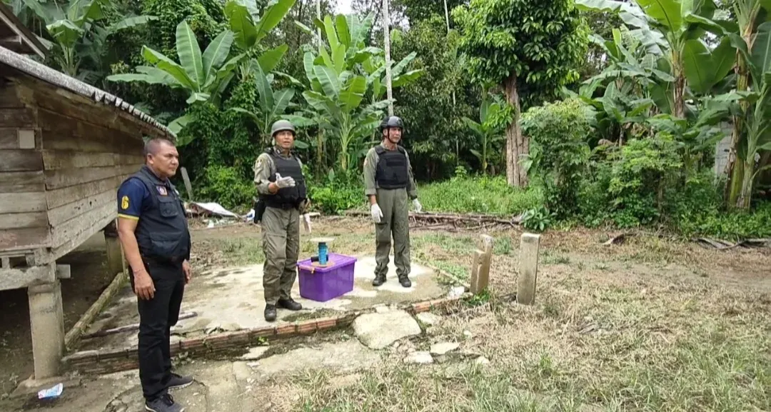 ต่อมาทางตำรวจชุดเก็บกู้ระเบิด EOD กองบังคับการตำรวจภูธรจังหวัดนครศรีธรรมราช ทำการเก็บกู้ระเบิดภายในห้องนอน พบเป็นระเบิดลูกเกลี้ยง สลักถูกถอด พร้อมทำงาน ก่อนเก็บกู้ทำลายบริเวณริมคลองนาป่า หลังบ้านเกิดเหตุ โดยกั้นชาวบ้านที่ไม่เกี่ยวข้องออก นอกรัศมีการทำลาย ก่อนลากสายชนวนทำลายระเบิดเสียงดังสนั่นหมู่บ้าน