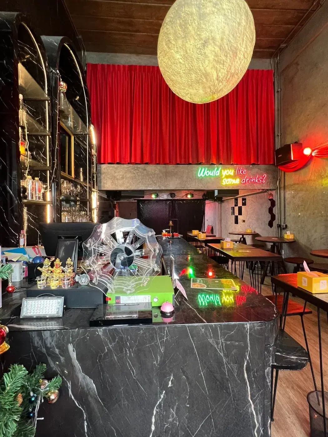 ระบบไฟเวที เครื่องPOSแคชเชียร์ทั้งระบบ อุปกรณ์ชงเหล้า ชื่อร้าน ผ้าม่าน ✅️