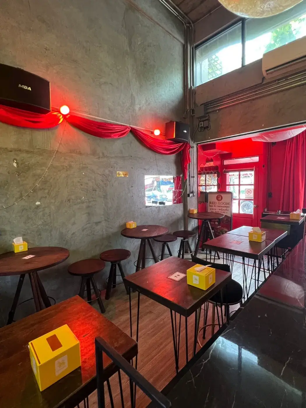เก้าอี้ แก้ว จานชาม เครื่องครัว ไมโครเวฟ หม้อข้าว ตู้เย็น ตู้แช่ทั้งหมด เครื่องเสียงทั้งระบบ หลอดไฟแดง ป้ายร้าน โคมไฟดาวอังคาร เวที