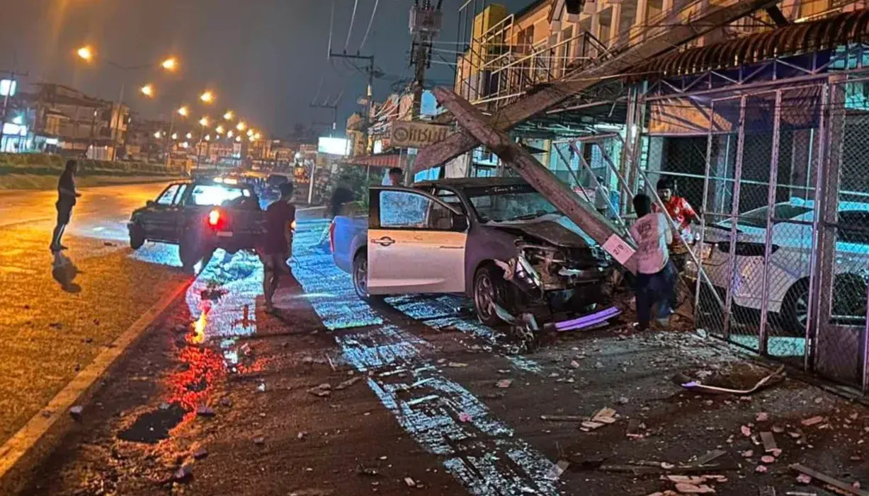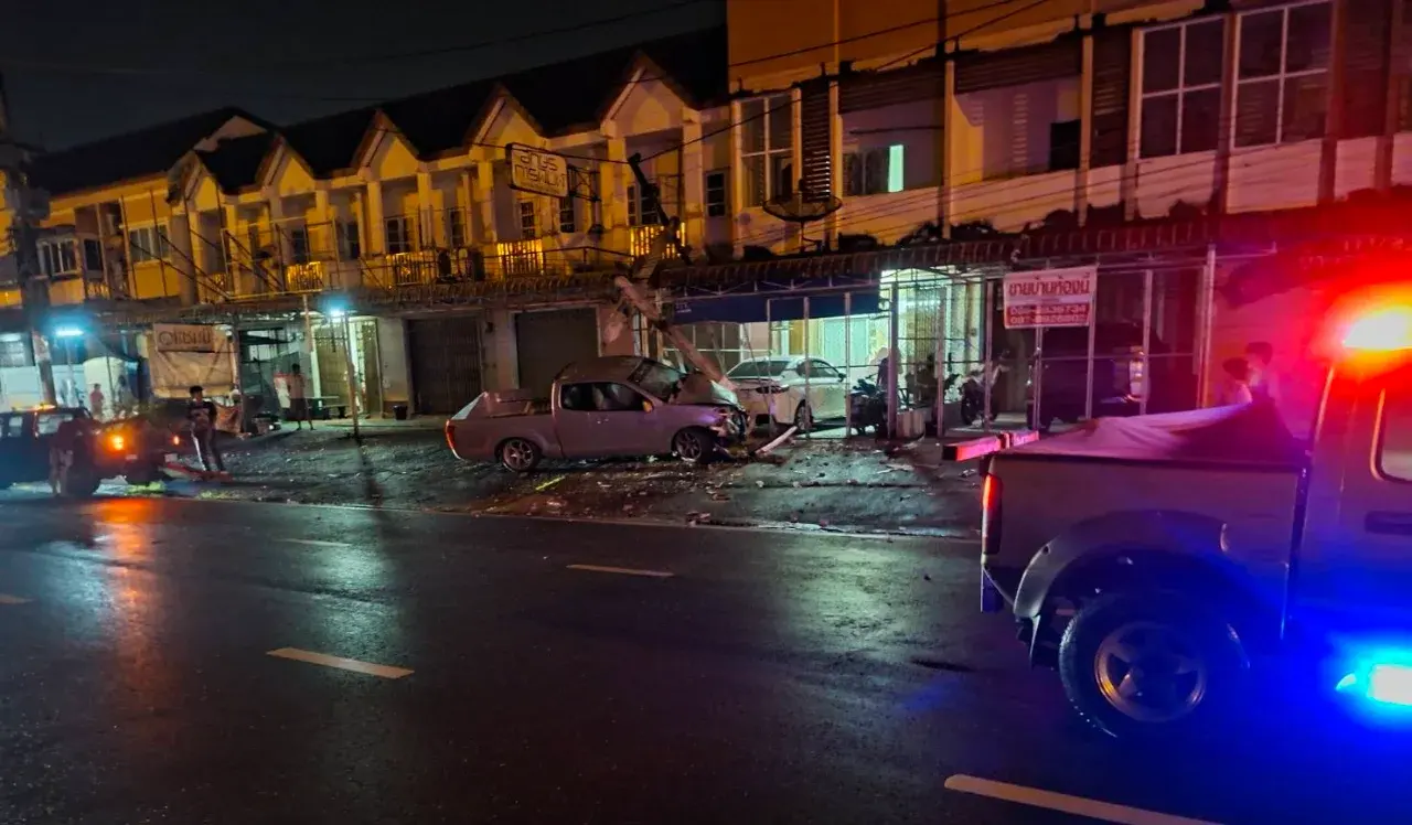 เมื่อถึงที่เกิดเหตุพบรถกระบะยี่ห้อดีแม็ก สีบอร์น สภาพเสียหลักชนเสาไฟฟ้าริมถนนไถลไปชนหน้าร้านค้าพังเสียหายยับ ส่วนคนขับไม่ได้รับบาดเจ็บ