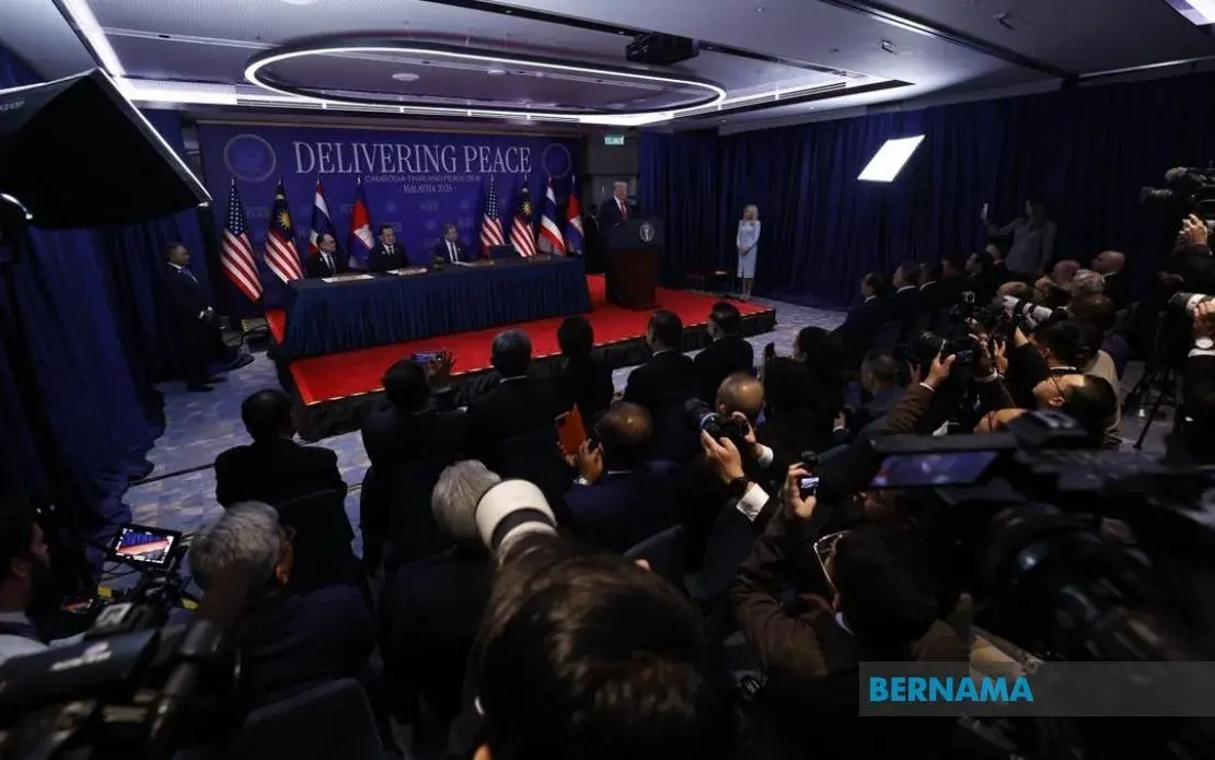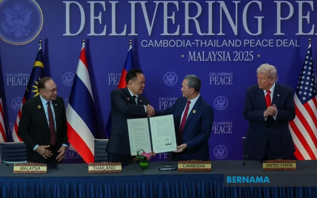 วันนี้ [ตามเวลาท้องถิ่น] ไทยและกัมพูชาได้ลงนามปฏิญญาร่วมกัน เกี่ยวกับข้อตกลงสันติภาพที่เรียกว่า "ข้อตกลงสันติภาพกัวลาลัมเปอร์" ซึ่งถือเป็นก้าวอย่างเป็นทางการ ในการยุติการสู้รบและฟื้นฟูสันติภาพ ตามแนวชายแดนที่เป็นข้อพิพาทของทั้ง 2 ประเทศ