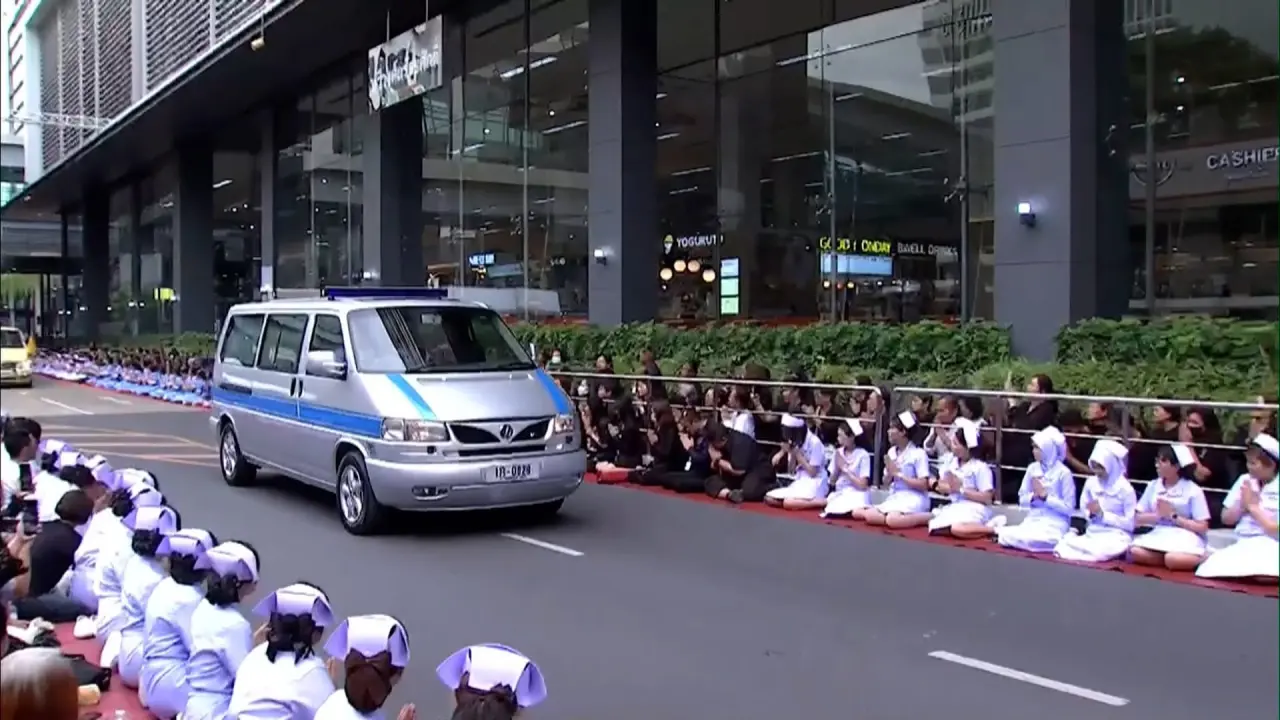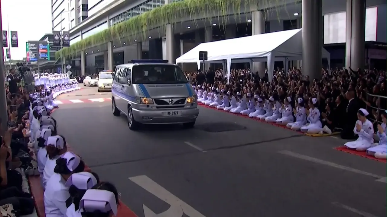 พระบรมศพ สมเด็จพระนางเจ้าสิริกิติ์ พระบรมราชินีนาถ พระบรมราชชนนีพันปีหลวง เคลื่อนออกจากโรงพยาบาลจุฬาลงกรณ์ สภากาชาดไทย ไปยังพระบรมมหาราชวัง