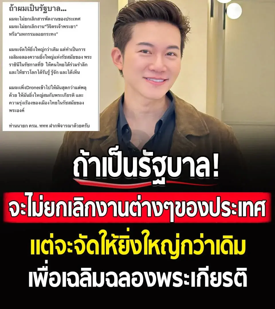 เป็นอีกหนึ่งโพสต์ที่เรียกเสียงชื่นชมจากชาวโซเชียล เมื่อ “อั๋น ภูวนาท คุนผลิน” พิธีกรและนักจัดรายการชื่อดัง ออกมาแสดงความคิดเห็นต่อกรณีการ “ยกเลิกการจัดงานเฉลิมพระเกียรติ” โดยเขากล่าวอย่างชัดเจนว่า หากตนเป็นรัฐบาล จะไม่ยกเลิก แต่จะจัดให้ยิ่งใหญ่กว่าเดิม เพื่อเทิดพระเกียรติ “สมเด็จพระนางเจ้าสิริกิติ์ พระบรมราชินีนาถ ในรัชกาลที่ 9” ให้ทั้งคนไทยและชาวโลกได้เห็นถึงความรุ่งเรืองของแผ่นดินไทย