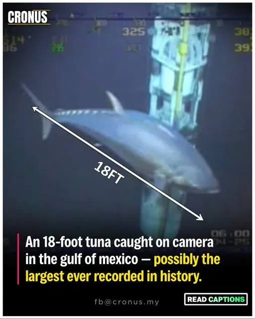 กล้องใต้น้ำของแท่นขุดเจาะน้ำมันกลางอ่าวเม็กซิโก บันทึกภาพเหตุการณ์ที่ทำให้ทั้งนักวิทยาศาสตร์และชาวประมงต้องตะลึง — เงาร่างขนาดมหึมาของปลาทูน่าตัวหนึ่ง กำลังเคลื่อนไหวอย่างสง่างามในน้ำลึก มันถูกประเมินว่ามีความยาวราว 18 ฟุต หรือกว่า 5 เมตรครึ่ง — ใหญ่พอจะเติมเต็มทั้งกรอบภาพได้ราวกับโลหะที่เคลื่อนไหว มีชีวิต มีแรง และมีวิญญาณของการอยู่รอด