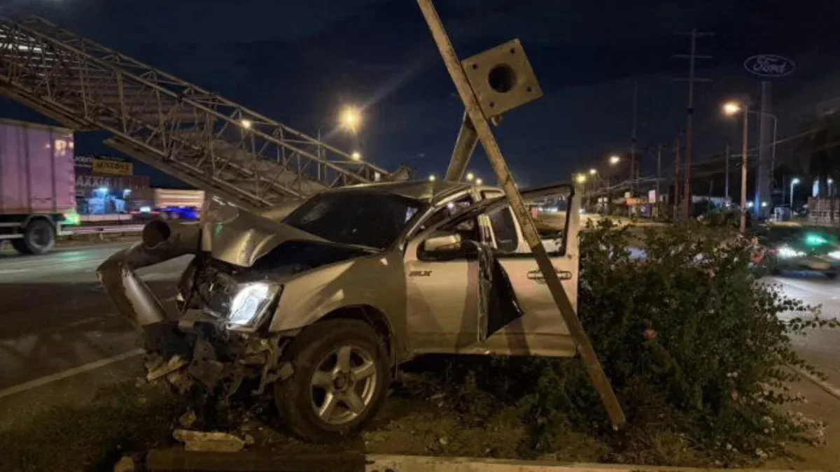 เหตุการณ์เกิดขึ้นเมื่อช่วงเช้ามืด บริเวณถนนกาญจนาภิเษกขาออก มุ่งหน้าบางบัวทอง ก่อนถึงแยกบางกรวย-ไทรน้อย ประมาณ 1 กิโลเมต รถกระบะ ยี่ห้ออีซูซุ สีเทา ทะเบียนกรุงเทพ พุ่งเข้าชนเสาป้ายบอกทางขนาดใหญ่จนเสาหัก ทำให้ป้ายล้มลงมากีดขวาง ช่องทางหลักทุกช่องจราจร