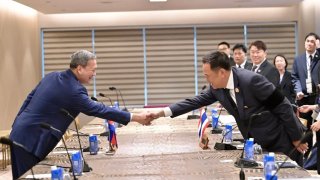 นายกฯ ไทย-กัมพูชา จับมือ ก่อนประชุมทวิภาคี 2 ชาติ . อนุทิน ชาญวีรกูล นายกรัฐมนตรี สัมผัสมือ กับ ฮุนมาเนต นายกรัฐมนตรีกัมพูชา ก่อนการหารือแบบทวิภาคี ไทย-กัมพูชา (28 ต.ค.)🧐