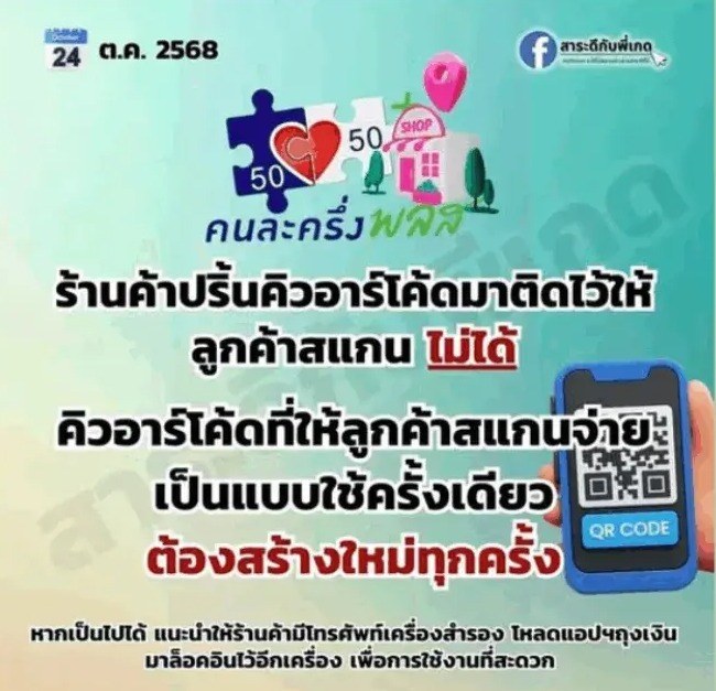 #คนละครึ่งพลัส: ร้านค้าต้องรู้! “ห้ามติด QR Code หน้าร้าน” ต้องสร้างใหม่ทุกครั้งเพื่อสแกนจ่าย