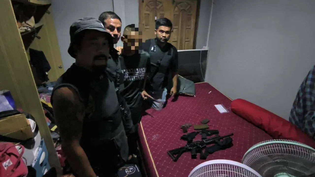 กระทั่งเจ้าหน้าที่สืบทราบว่า นายกิตติศักดิ์ หรือ สบู่ นากะชะ กลับมาพักอยู่ที่บ้านหมู่ 4 ต.ทุ่งสง อ.นาบอน จ.นครศรีธรรมราช จึงนำกำลังบุกตรวจสอบบ้าน และสามารถจับกุมนายกิตติศักดิ์ หรือ สบู่ นากะชะ พร้อมของกลางอาวุธปืน เครื่องกระสุนปืน และวัตถุระเบิดจำนวนมาก ประกอบด้วย ระเบิดลูกเกลี้ยง 1 ลูก,.อาวุธปืนเล็กยาว ขนาด 5.56 จำนวน 1 กระบอกพร้อมเครื่องกระสุน 38 นัด,อาวุธปืนพกสั้นขนาด 9 มม จำนวน 1 กระบอก พร้อมเครื่องกระสุน 32 นัด ,อาวุธปืนพกสั้นขนาด 11 มม จำนวน 1 กระบอก พร้อมเครื่องกระสุน 50 นัด,อาวุธปืนพกสั้นไทยประดิษฐ์(ลูกซอง) ขนาดเบอร์ 12 จำนวน 1 กระบอก พร้อมเครื่องกระสุน 13 นัดและโทรศัพท์มือถือ จำนวน 1 เครื่อง