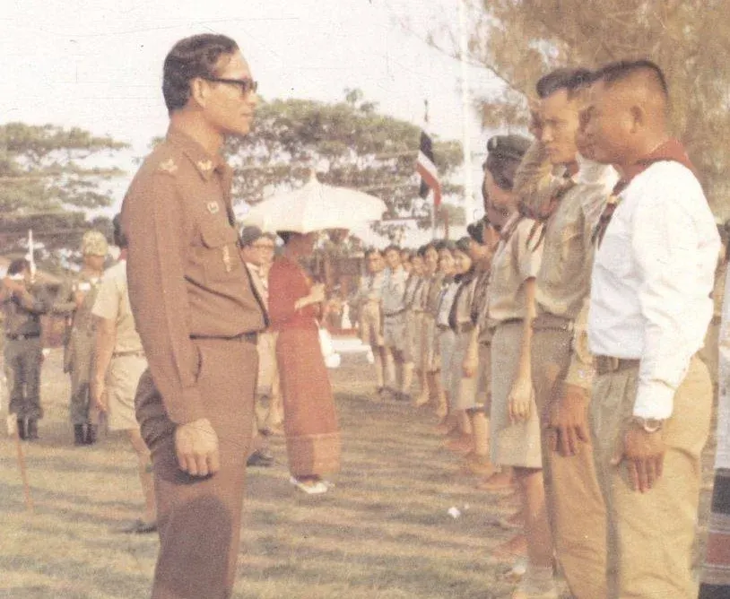 ต่อมา ในปี พ.ศ. 2515 ลูกเสือชาวบ้านได้รับพระมหากรุณาธิคุณจาก พระบาทสมเด็จพระมหาภูมิพลอดุลยเดชมหาราช บรมนาถบพิตร และ สมเด็จพระนางเจ้าสิริกิติ์ พระบรมราชินีนาถ พระบรมราชชนนีพันปีหลวง เสด็จทอดพระเนตรกิจกรรมลูกเสือชาวบ้าน ณ กองกำกับการตำรวจตระเวนชายแดนเขต 4 จังหวัดอุดรธานี พร้อมพระราชทาน ผ้าผูกคอพระราชทาน และ ธงประจำรุ่น ซึ่งนับเป็นพระมหากรุณาธิคุณสูงสุด ที่เป็นขวัญและกำลังใจแก่สมาชิกทั่วประเทศ