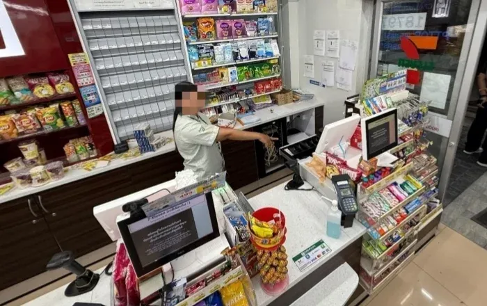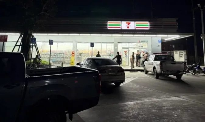 ผู้สื่อข่าวรายงานว่า เมื่อเวลา 23.45 น.วันที่ 29 ตุลาคม 2568 ร.ต.ท.ธีรนพ ชูจันทร์ รอง สว.(สอบสวน) สภ.พระพรหม จ.นครศรีธรรมราช ได้รับแจ้งคนร้ายบุกชิงทรัพย์ร้านสะดวกซื้อ 7 -11ในปั๊มน้ำมันแห่งหนึ่ง หมู่ 7 ต.นาสาร อ.พระพรหม จึงพร้อมด้วยกำลังตำรวจสายตรวจและชุดสืบสวน รีบรุดไปตรวจสอบ