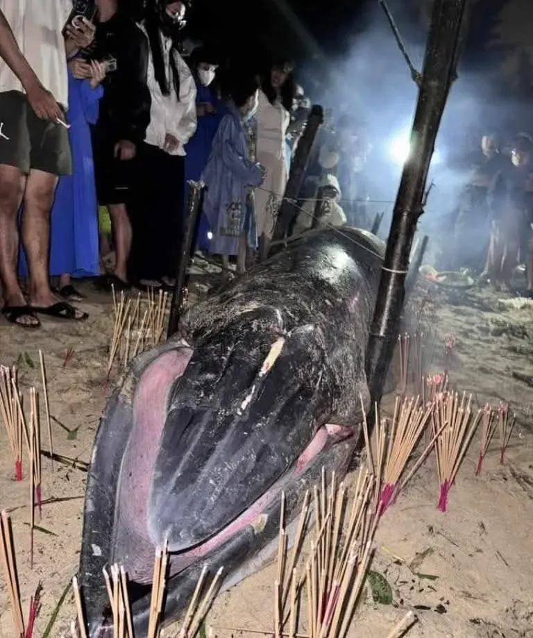 เมื่อคืนที่ผ่านมา ชาวบ้านในพื้นที่ได้ร่วมกันจุดธูปบูชา และบางรายถึงกับร้องไห้ด้วยความอาลัย ก่อนจะมีการเตรียมการ จัดพิธีฝังวาฬตามประเพณีท้องถิ่น ซึ่งจะดำเนินขึ้นอย่างเป็นทางการในวันถัดไป โดยจะมีทั้งขบวนแห่ การทำบุญเลี้ยงพระ และการสวดขอพรให้ดวงวิญญาณของวาฬไปสู่สุขคติ