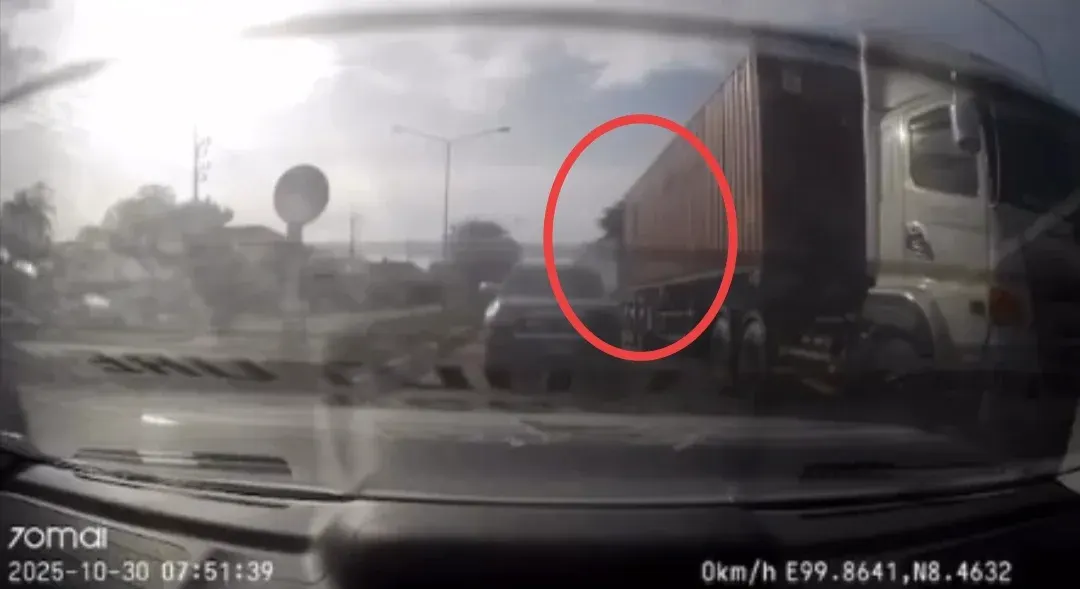 อย่างก็ตามตำรวจได้รับคลิปกล้องหน้ารถคันหนึ่ง ที่ขับสวนทาง และจอดติดไฟแดงตรงข้ามกับรถบรรทุกพ่วง 18 ล้อบรรทุกตู้คอนเทนเนอร์ ก่อนบันทึกภาพนาทีชนอย่างชัดเจนในจังหวะที่รถบรรทุกพ่วง 18 ล้อ จอดติดไฟแดง บริเวณหน้ามหาวิทยาลัยราชภัฏนครศรีธรรมราช มุ่งหน้า อ.พรหมคีรี ทันใดนั้นรถบรรทุก6ล้อ ขับตามหลัง ก่อนที่คนขับพุ่งชนท้ายรถพ่วง 18 ล้ออย่างจังอัดก๊อปปี้ท้าย คนขับ 6 ล้อ ติดภายใน เป็นเหตุให้บาดเจ็บสาหัสและเสียชีวิตที่ ส่วนสาเหตุตำรวจสันนิษฐานว่า นาพลากร คนขับ6ล้อ อาจจะหลับใน ซึ่งตำรวจจะสอบสวนและตรวจสอบกล้อวงจรปิดอย่างละเอียดอีกครั้ง เพื่อสรุปสาเหตุอุบัติเหตุครั้งนี้