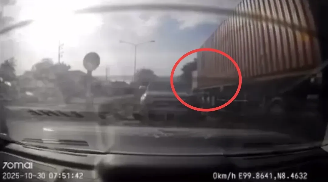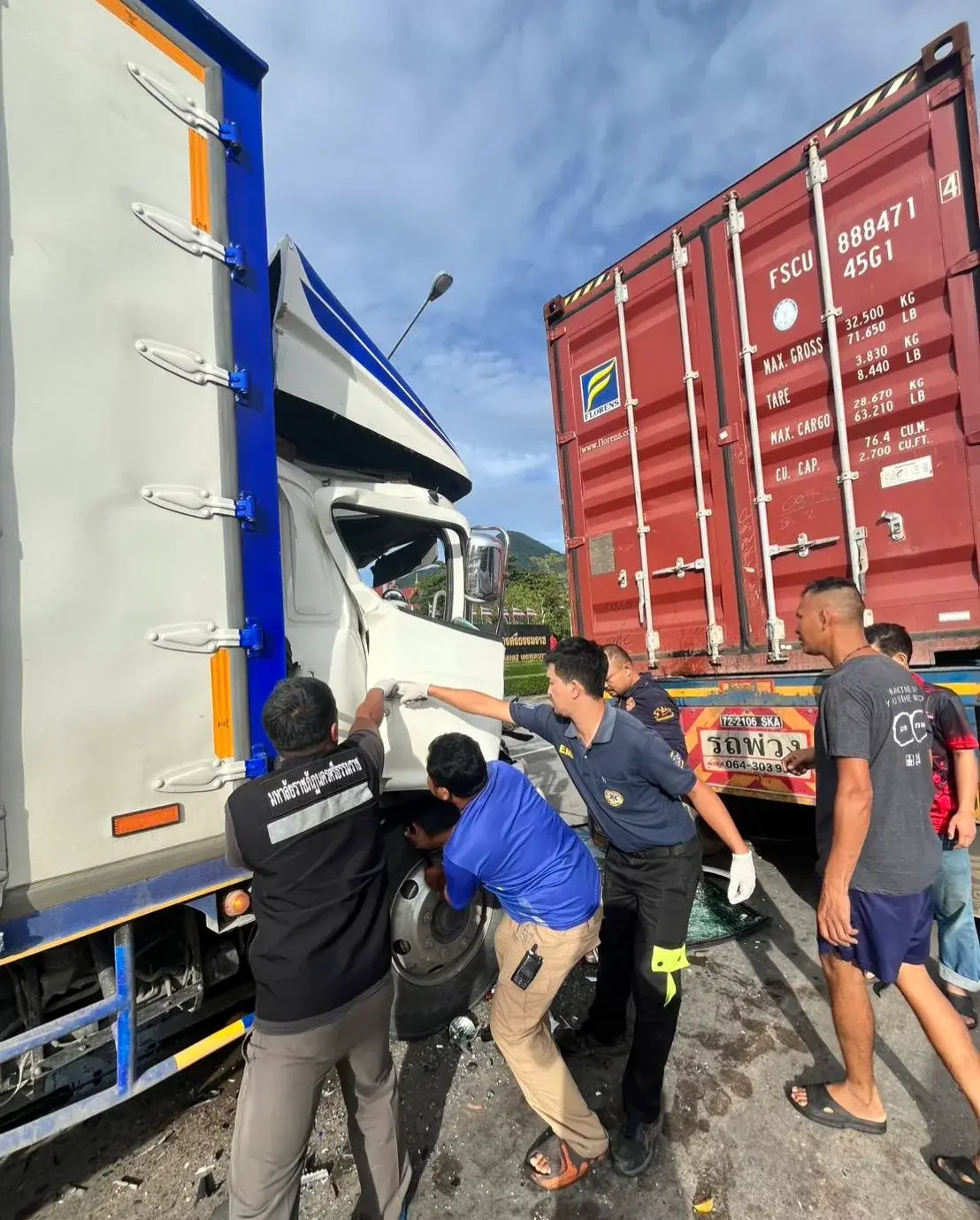 เมื่อเวลา 08.00น.วันที่ 30 ตุลาคม 2568 พ.ต.ท.วงศธร ดุลเภรี สว.( สอบสวน ) สภ.เมือง จ.นครศรีธรรมราช ได้รับแจ้งเกิดอุบัติเหตุรถ 6 ล้อ ชนท้ายอัดก๊อปปี้รถพ่วง 18 ล้อ บรรทุกตู้คอนเทนเนอร์ บริเวณแยกไฟแดง หน้ามหาวิทยาลัยราชภัฏนครศรีธรรมราช ถนนนครศรีฯ - พรหมคีรี ฝั่งออกเมือง หมู่ 4 ต.ท่างิ้ว อ.เมือง คนขับรถบรรทุก 6 ล้อถูกอัดก๊อปปี้ติดภายในไม่สามารถออกมาได้อาการสาหัส