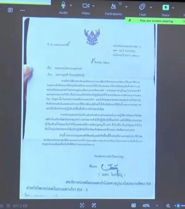 โชว์หลักฐานระหว่างการประชุมออนไลน์กับ กมธ.ทหาร เอกสารระบุเป็นหนังสือขอความอนุเคราะห์จากทหาร