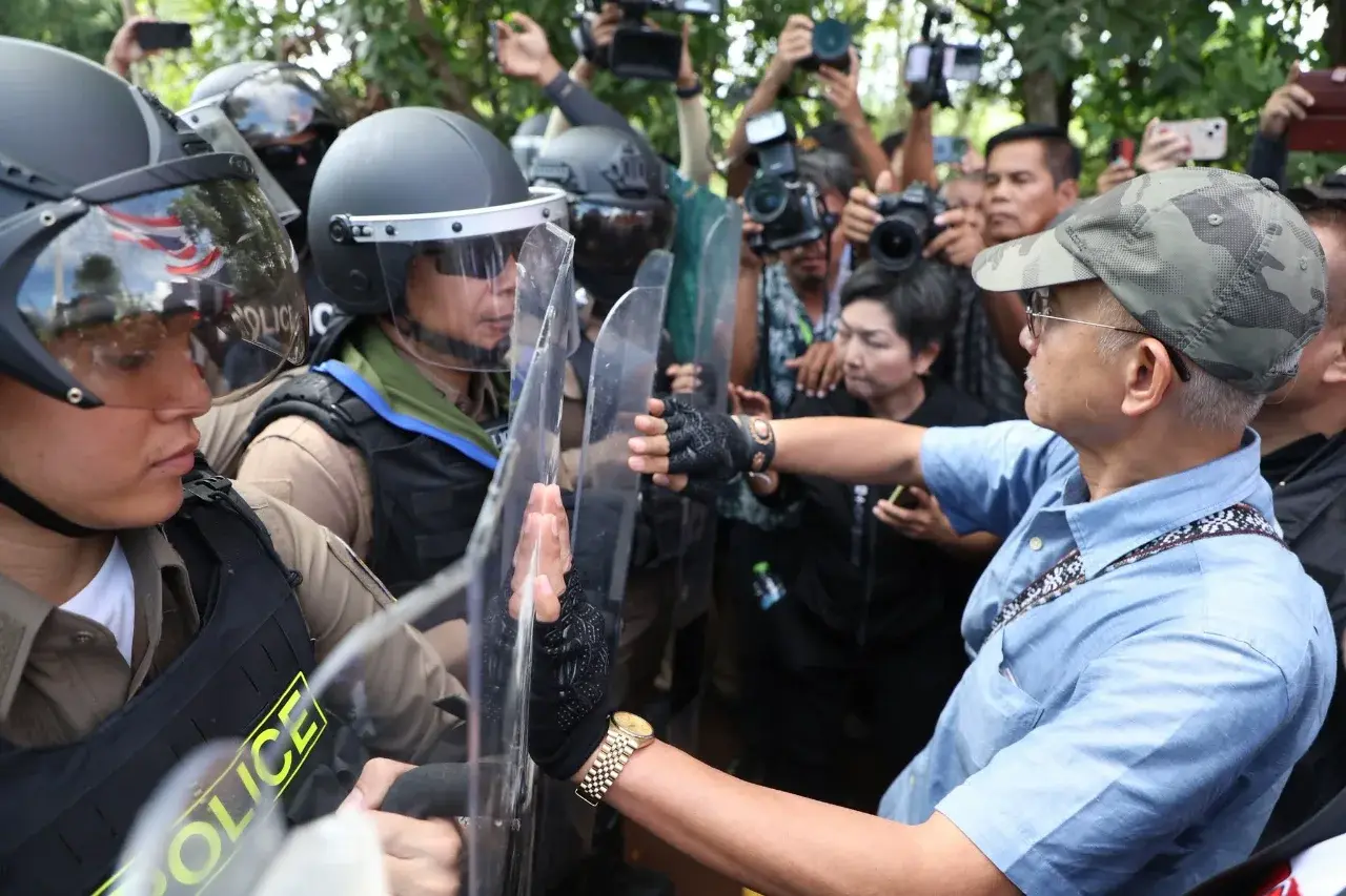 นาทีเดือด! “วีระ สมความคิด” นำมวลชนฝ่าแนวกั้นตำรวจ มุ่งหน้าบ้านหนองจาน ไล่เคลียร์ปมรุกล้ำชายแดน