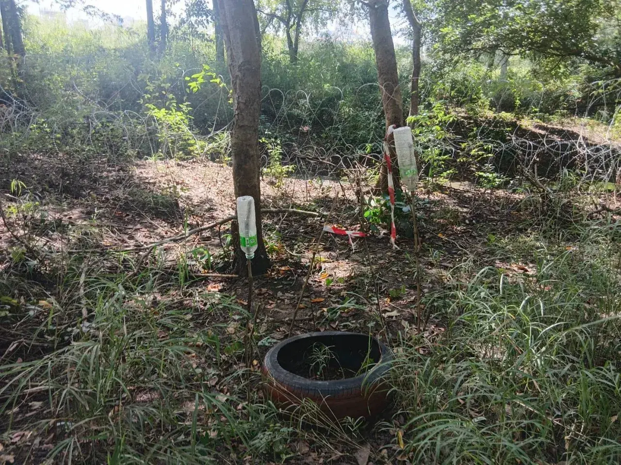 หลังได้รับรายงาน หน่วยจึงได้ดำเนินการเข้าตรวจสอบพื้นที่ทันที โดยจัดกำลังพลเข้าทำการตั้งแนวเขตอันตรายและกั้นพื้นที่ด้วยเชือกสีขาว–แดง พร้อมติดป้ายเตือนให้ประชาชนหลีกเลี่ยงการเข้าใกล้บริเวณจุดที่พบ เพื่อป้องกันอันตรายและรอการสนับสนุนจากหน่วยเก็บกู้ทุ่นระเบิด