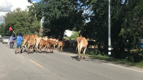 เส้นทางของนายฮ้อย เลี้ยงวัวหนึ่งฝูงยากจะข้ามถนนได้