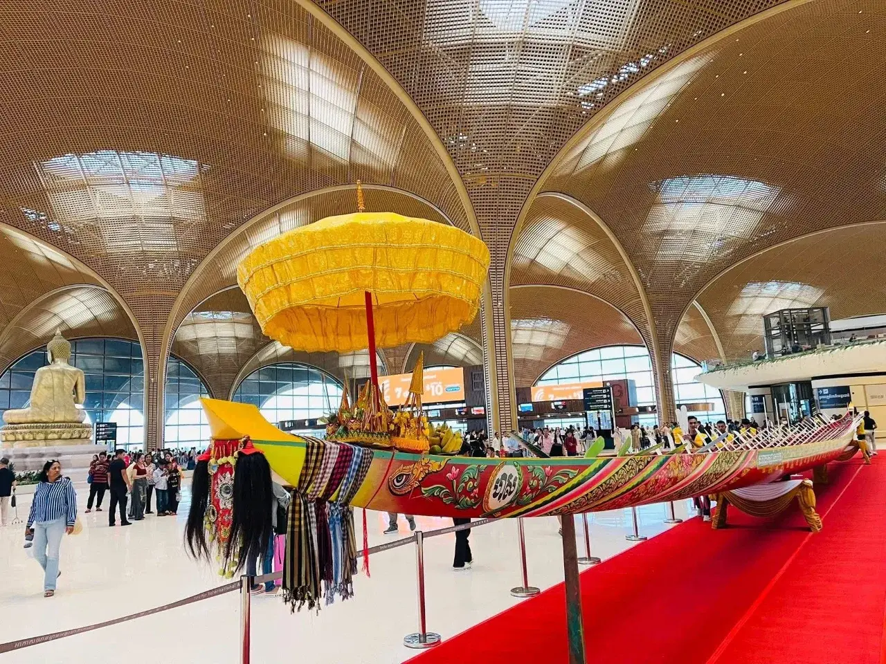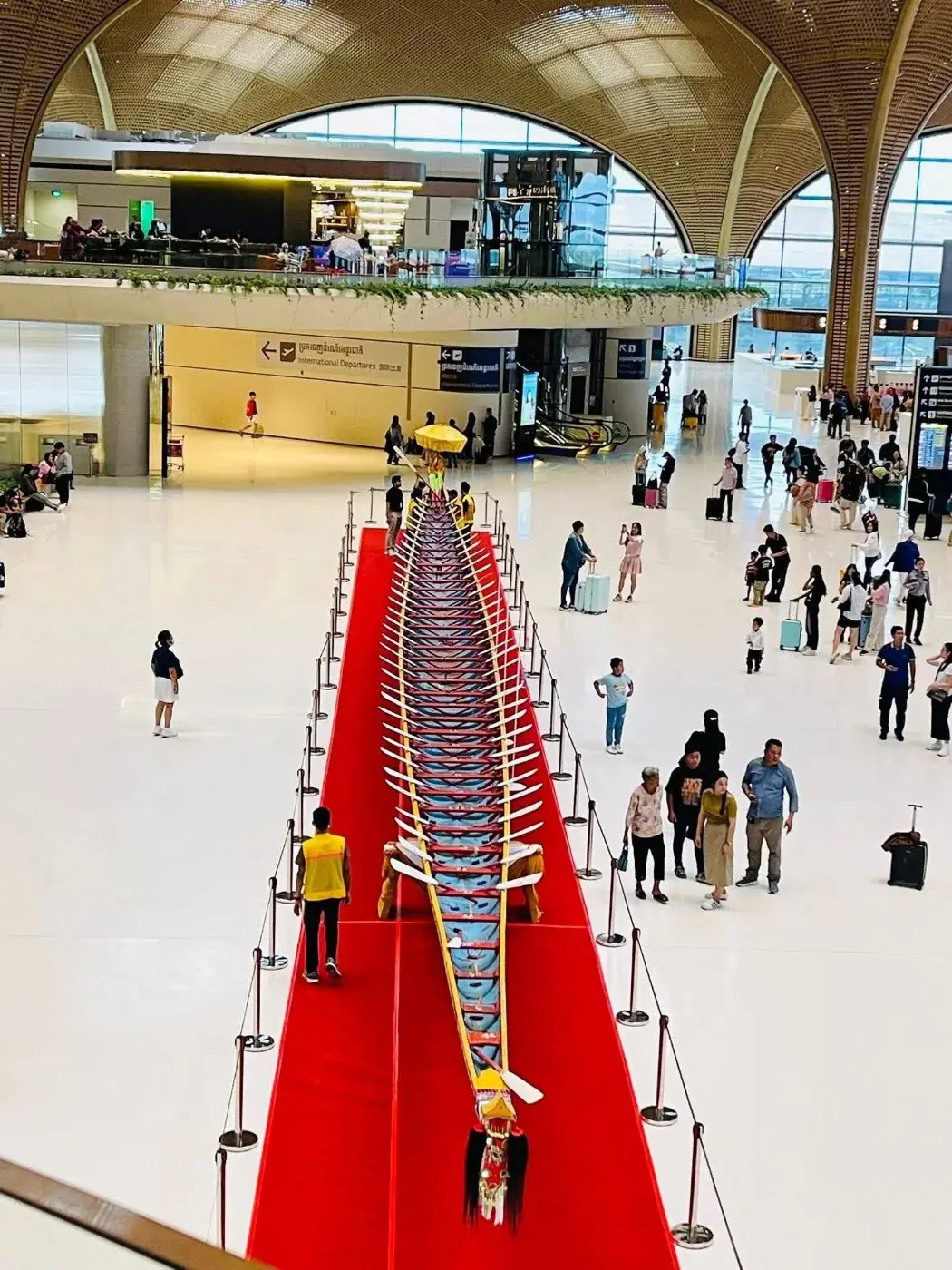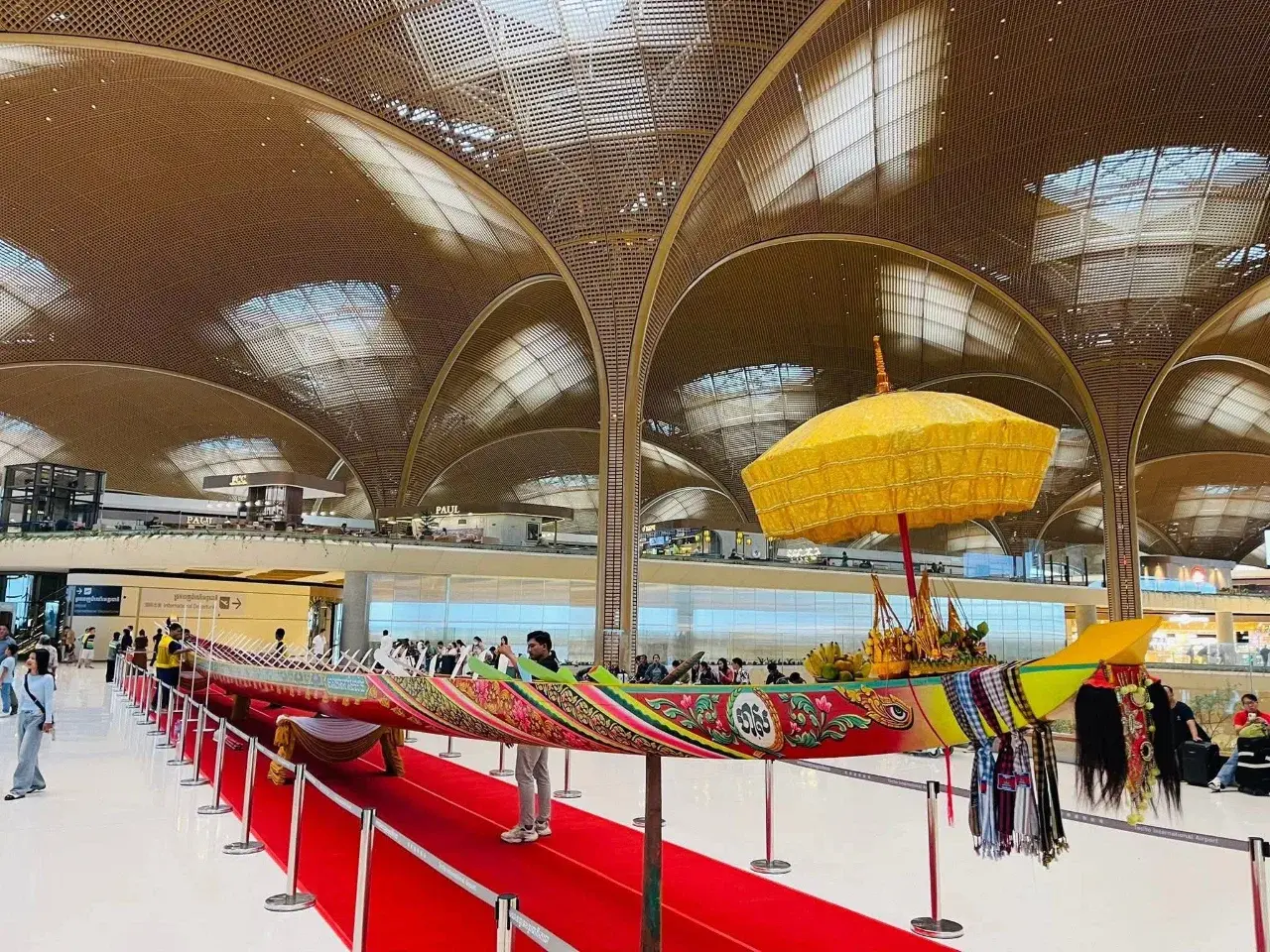 กระทรวงวัฒนธรรมและศิลปะกัมพูชา จัดแสดงเรือยาวสุดวิจิตร “สารายเตโชเสนชัย” (Saraye Techo Sen Chhai) กลางสนามบินนานาชาติเตโช เพื่อร่วมเฉลิมฉลองเทศกาลบุญอมทูก หรือเทศกาลน้ำ ซึ่งเป็นงานสำคัญประจำปีที่รวมพิธีแข่งเรือและลอยกระทงไว้ด้วยกัน