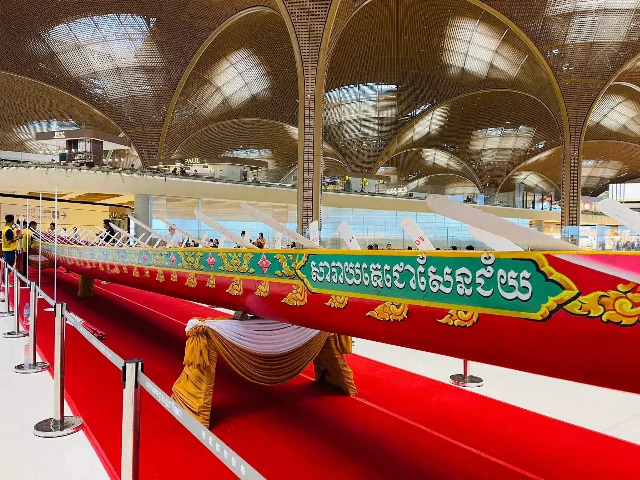 กัมพูชาจัดแสดงเรือยาว “สารายเตโชเสนชัย” กลางสนามบินเตโช ต้อนรับเทศกาลน้ำและลอยกระทง