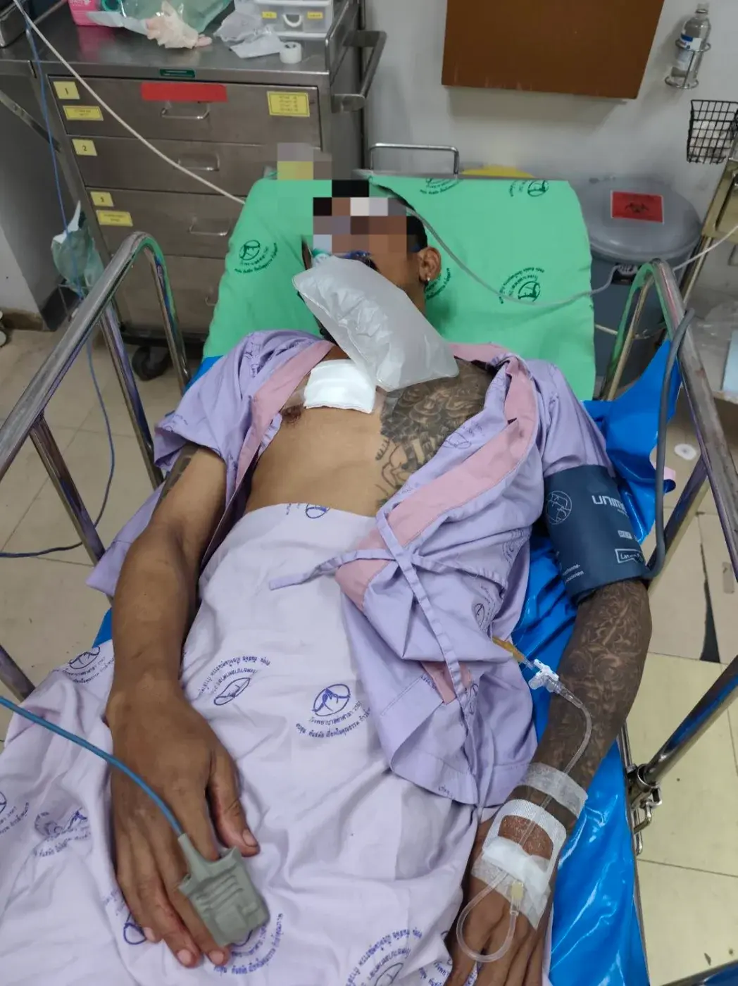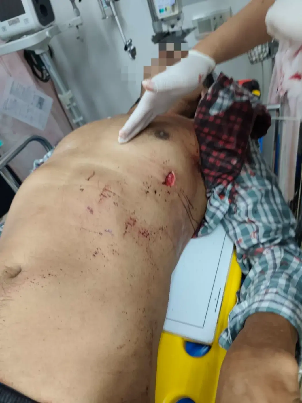 ที่เกิดเหตุบริเวณหน้าร้านชำ ตำรวจพบเพียงกองเลือด ส่วนคนเจ็บทั้งสอง กู้ภัยนำส่งโรงพยาบาลท่าศาลา แพทย์ช่วยเหลืออาการปลอดภัยแล้ว สอบสวนทราบคนเจ็บรายแรกชื่อนายสุภรณ์ อายุ 61 ปี อยู่บ้านหมู่ 6 ต.โมคลาน อ.ท่าศาลา มีบาดแผลถูกแทงเข้าชายโครงซ้าย 1 แผล บาดเจ็บไม่สาหัสยังรู้สึกตัวให้การได้ ส่วนอีกรายเป็นฝ่ายคู่กรณี ชื่อนายชยานันต์ อายุ 32 ปี อยู่บ้านหมู่ 7 ต.หัวตะพาน อ.ท่าศาลา มีบาดแผลถูกแทงด้วยมีดปลายแหลมเข้าหน้าอกขวา 1 แผล บาดเจ็บไม่สาหัส รู้สึกตัวสามารถให้การได้เช่นกัน ตำรวจึงอายัดตัวคนเจ็บทั้งสองไว้ดำเนินคดีข้อหาทำร้ายร่างกายได้รับบาดเจ็บสาหัสหรืออาจจะแจ้งข้อพยายามฆ่าทั้งคู่ ในภายหลังหากมีพยานหลักฐานชัดเจน