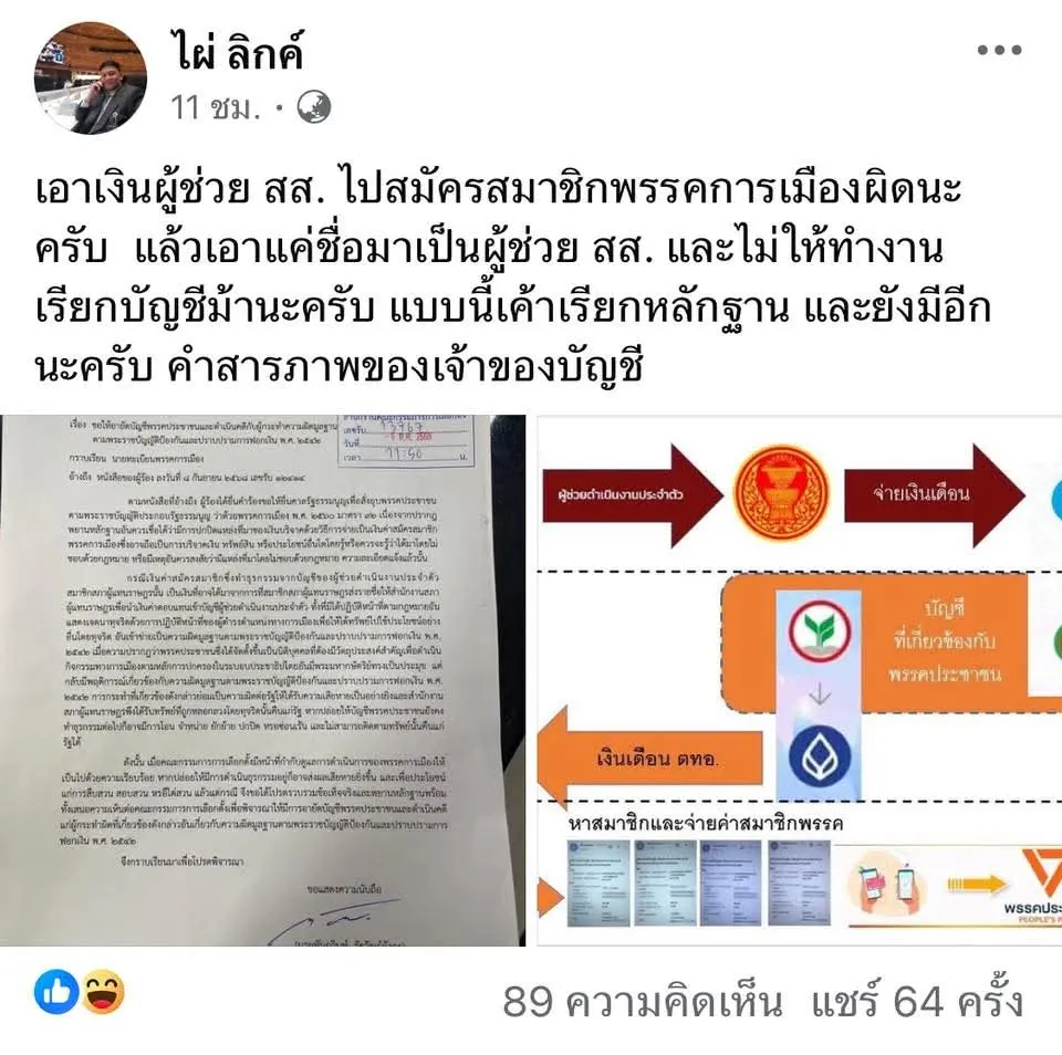ไผ่ ลิกค์ เอาคืน แฉผู้ช่วย สส. รับเงินสภา แต่ไม่ทำงาน แถมเอาเงินโอนพรรคเข้าตัวเอง บอกแบบนี้เรียกบัญชีม้า มีหลักฐานและคำสารภาพ พร้อมเลย