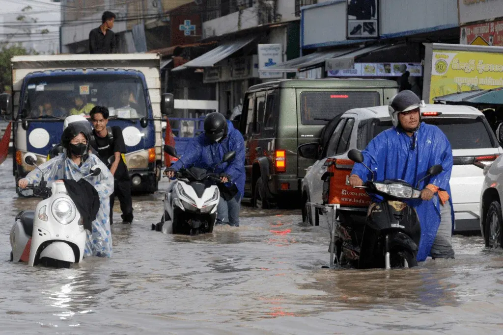 หลายพื้นที่ของกรุงพนมเปญถูกน้ำท่วม