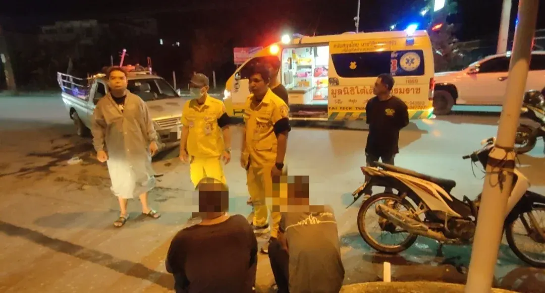 เมื่อถึงที่เกิดเหตุพบคนเจ็บเป็นชาย 2 คน มีอาการปวดเมื่อยตามร่างกาย ส่วนที่เกิดเหตุพบรถกระบะชนกับรถจักรยานยนต์ติดหน้าห้องเครื่อง มีคนขับชื่อนายวันเฉลิม อายุ 38 ปี คนงานร้านวัสดุก่อสร้างแห่งหนึ่งและนายปริทัศน์ อายุ 18 ปี เพื่อนคนงานยืนรออยู่ในที่เกิดเหตุ