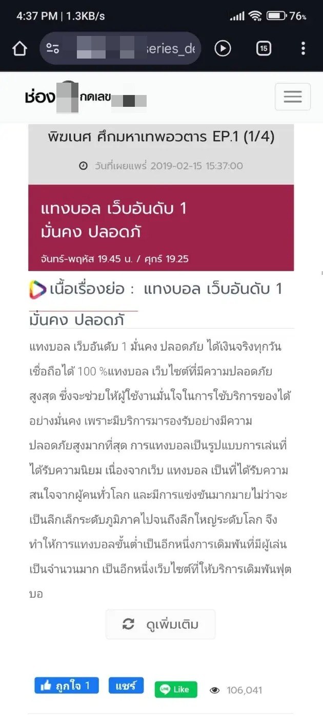 วันนี้ (7 พ.ย.68) บนโซเชียลมีการแชร์ข้อมูลว่า มีดิจิตอลทีวีช่องดังแปะโฆษณาชักชวนเล่นพนันบอล ในรูปแบบต่างๆ โดยได้ตวจพบทีวีช่องนี้ มีผู้เข้ามาดูแล้วกว่า 106,037 ครั้ง ซึ่งท้าทายกับนโยบายของกองบัญชาการตำรวจสอบสวนกลาง สายตรวจออนไลน์ กก.3 บก.ปอท. อย่างยิ่ง