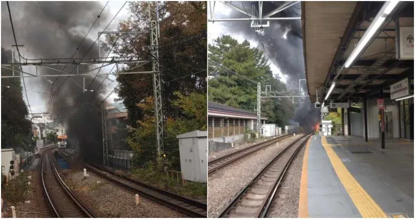ภาพถ่ายและวิดีโอที่โพสต์บนชานชาลา X แสดงให้เห็นเปลวไฟพุ่งออกมาจากรางรถไฟ พร้อมกับกลุ่มควันหนาทึบ เจ้าหน้าที่ดับเพลิงได้เดินทางมาถึงที่เกิดเหตุและกำลังดับเพลิงด้วยน้ำ