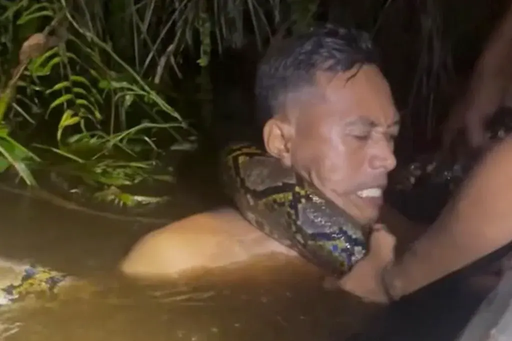 คลิปวิดีโอสุดน่าสะพรึงกลัวบันทึกเหตุการณ์ที่งูหลามยักษ์ยาว 6 เมตรลากไกด์ทัวร์คนหนึ่งลงใต้น้ำที่แม่น้ำบอร์เนียว ประเทศอินโดนีเซีย ไกด์ชื่อ "เฮรู" กำลังเดินทางกับกลุ่มเมื่อเห็นงูหลามเกยอยู่ริมตลิ่ง เขาโน้มตัวลงไปจับงู แต่กลับถูกลากลงน้ำและถูกงูพันรอบคออย่างรวดเร็ว ลูกเรือรีบเข้าช่วย โดยใช้สองคนจับหัวและหางของงูเพื่อปลดปล่อยเฮรู ซึ่งโชคดีที่เขาไม่ได้รับบาดเจ็บ และพวกเขาสามารถจับงูขึ้นมาได้ก่อนปล่อยมันกลับคืนสู่ธรรมชาติ