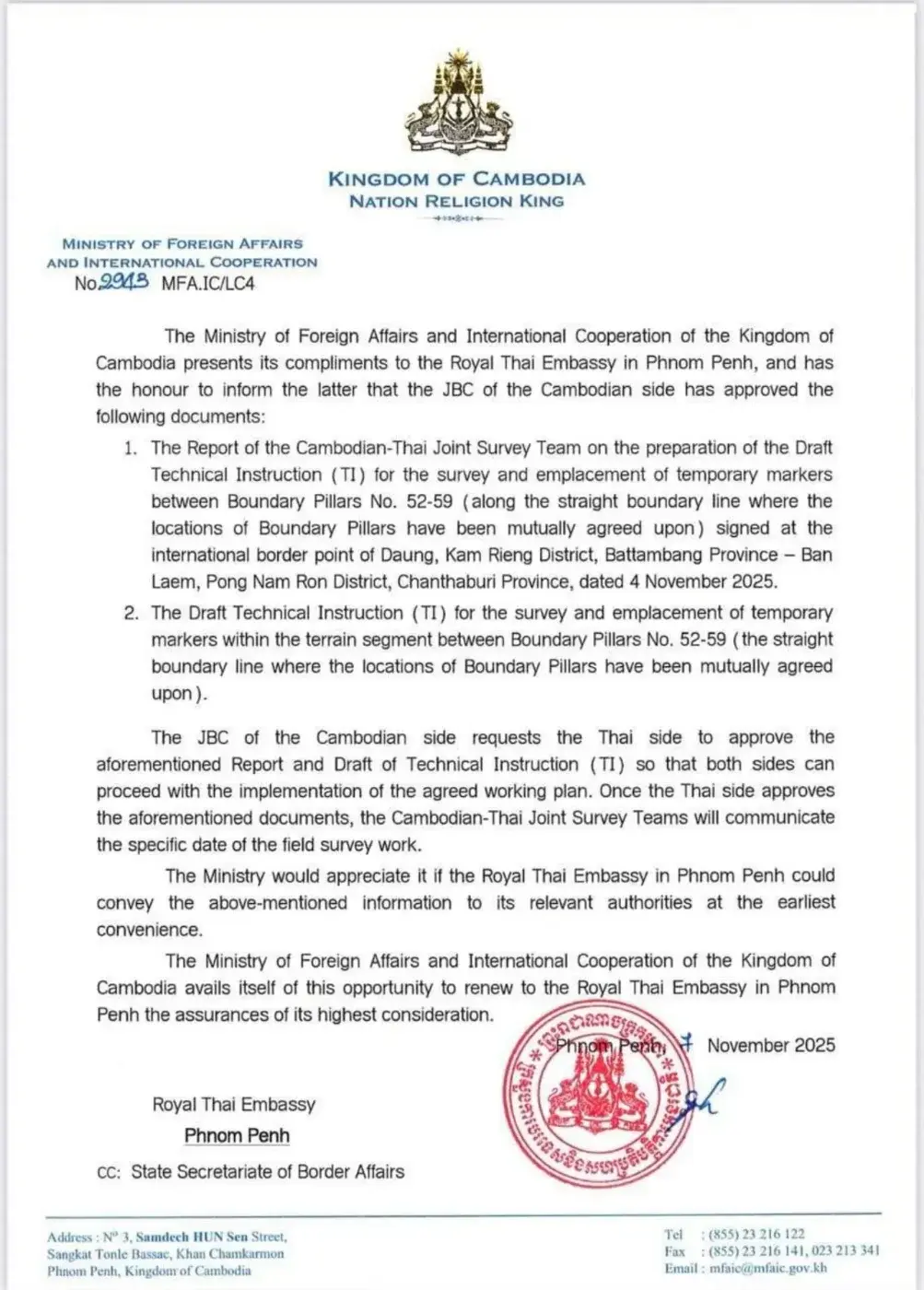 โดยการสำรวจหลักเขตที่ 52–59 เป็นขั้นตอนที่ 1-2 เรียบร้อยแล้ว ในขั้นตอนที่ 3 คือการสำรวจแนวเขตและปักหลักเขตชั่วคราว โดยได้นัดกับทางฝ่ายกัมพูชา มาดำเนินการในเร็ว ๆ นี้