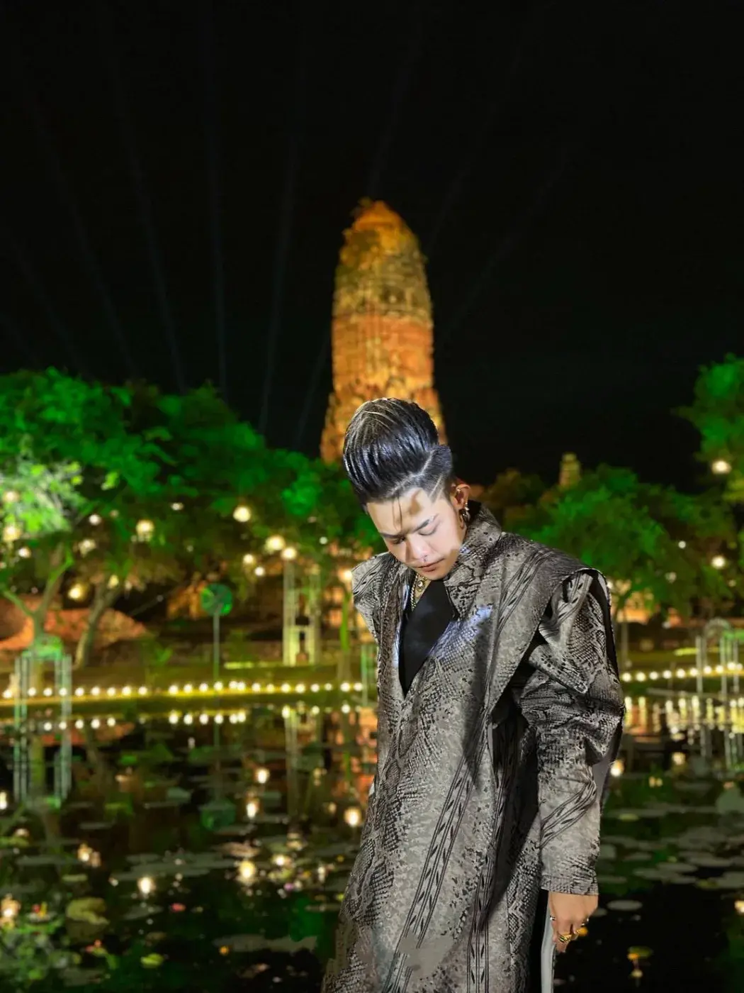 ชุดนี้ออกแบบโดย ไก่ อูกัส ส่วนลายผ้าสุดวิจิตรนี้ออกแบบโดย นางสาวจีรณัฏฐ์ ภักดีรัตน์ (น้ำเกลือ) จากห้างหุ้นส่วนจำกัด เรือนไหม-ใบหม่อน บ้านไหมทองสะเร็น ทำให้ เก่ง ธชย ถึงกับกล่าวด้วยความมุ่งมั่นว่า ตนเองจะนำงานผ้าไหมที่พระองค์ท่านได้ทรงเคยส่งเสริมไว้ มา "ต่อยอดและใช้กับชุดที่ทำการแสดง" เพื่อ "สืบสานและสนับสนุนต่อไปอีกทางหนึ่ง" อย่างแน่นอน!