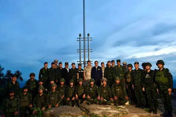 นายกรัฐมนตรีขึ้นภูมะเขือร่วมร้องเพลงชาติและให้กำลังใจกำลังพลแนวหน้า