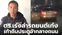 ตำรวจ เร่งล่า รถยนต์เก๋งพิเรนท์ เท้าถีบประตูอ้ากลางถนน เสี่ยงเกิดอันตราย