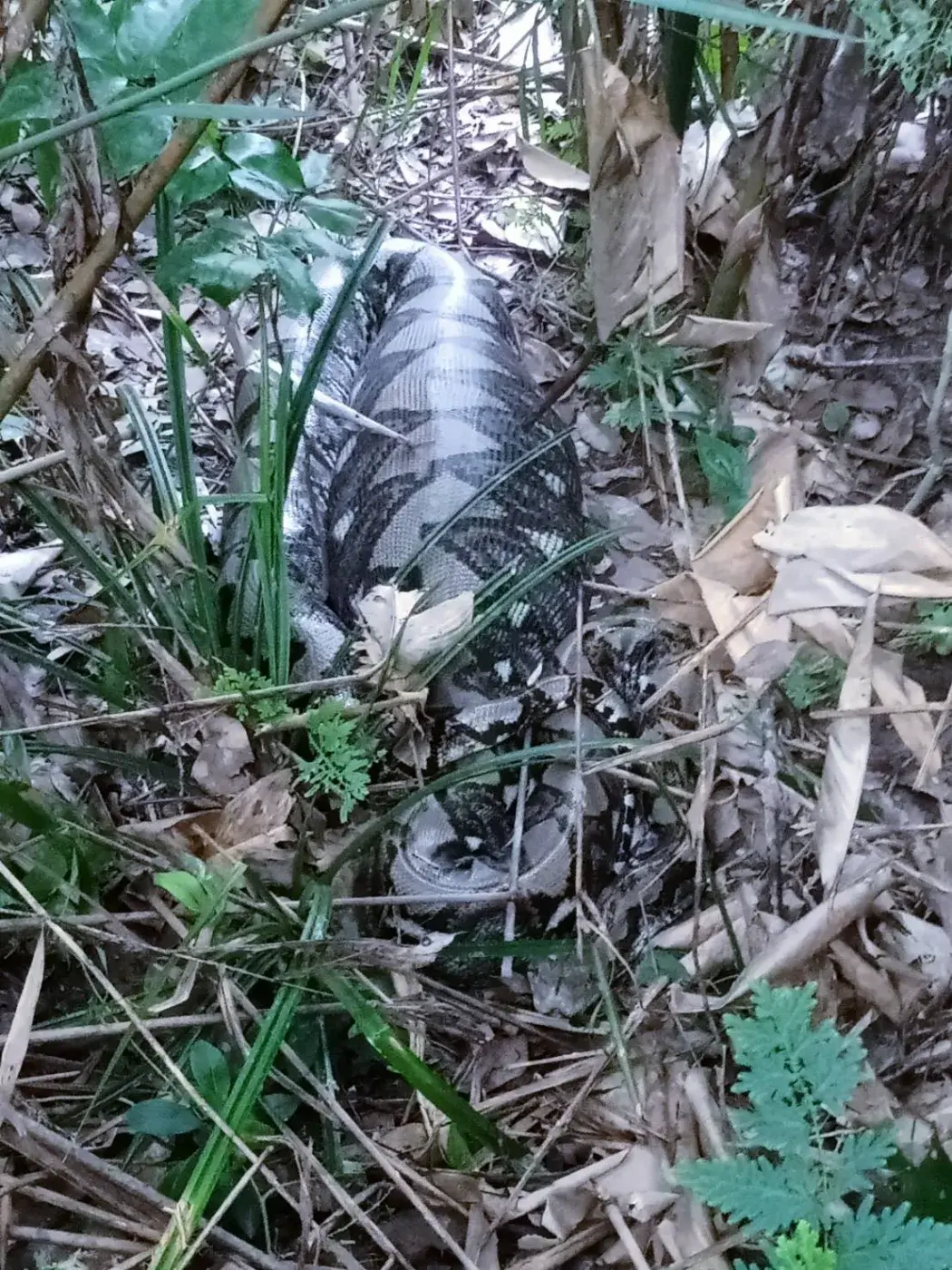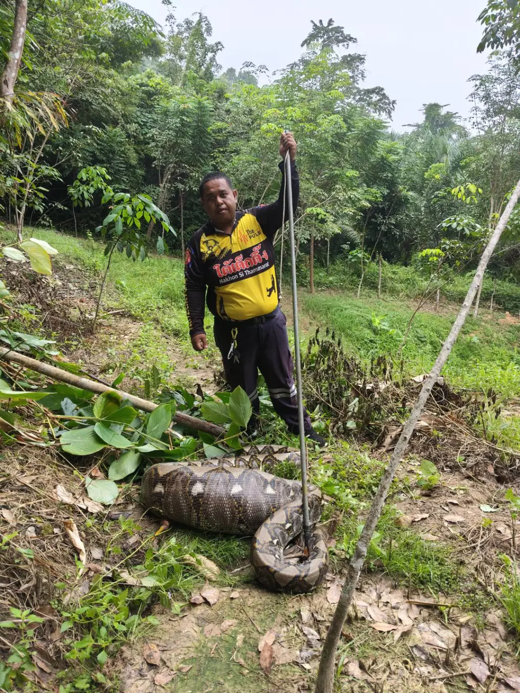 เที่เกิดเหตุเป็นสวนยางพาราหลายสิบไร่ พบนายคำพี เจ้าของสวนยืนรออยู่ในสวน ก่อนจะรีบพาไปที่พงหญ้าในสวนยางพารา ตรวจสอบพบงูเหลือมยาว 4 เมตร สภาพท้องป่อง จึงใช้บ่วงคล้องจับโดยง่ายดาย ก่อนจะนำไปปล่อยป่าธรรมชาติต่อไป