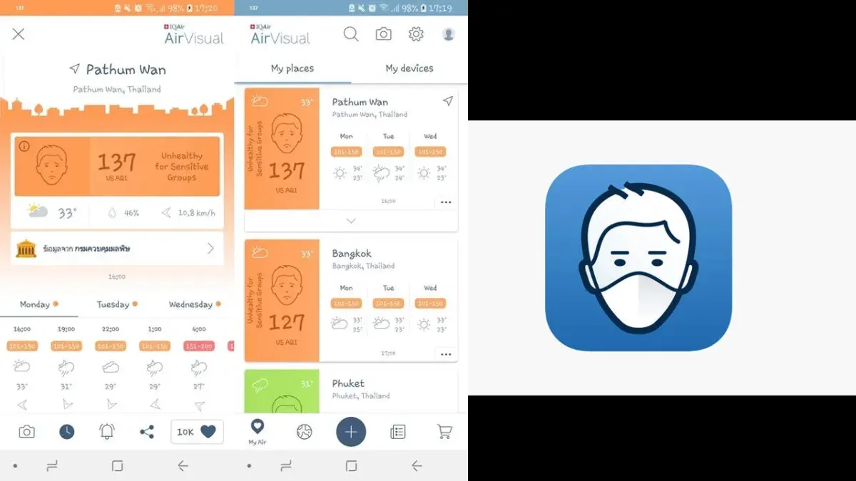 แหล่งข้อมูลที่น่าเชื่อถือ: AirVisual ดึงข้อมูลจากสถานีตรวจวัดคุณภาพอากาศมากกว่า 10,000 จุดทั่วโลก รวมถึงสถานีตรวจวัดทั้งภาครัฐและเอกชนในประเทศไทย ทำให้ข้อมูลที่แสดงใกล้เคียงกับสถานการณ์จริงในพื้นที่ของผู้ใช้งานมากที่สุด