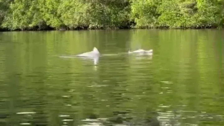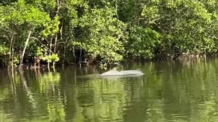 ตื่นตา ครอบครัวโลมา 3 ตัว โผล่อวดโฉมร่องน้ำที่บ่อท่อแหล่งท่องเที่ยวชื่อดัง อ.อ่าวลึก จ.กระบี่ ชาวบ้าน นทท.แห่บันทึกภาพ ด้านชาวบ้านเผยหายไปนับสิบปี สัญญาณดีวันนี้ปลาโลมาหวนกลับคืน วอนทุกคนช่วยดูแล