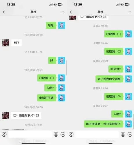 ภาพหน้าจอแชทที่ครอบครัวของเธอโพสต์ แสดงให้เห็นว่าพวกเขาไม่สามารถติดต่อ "เฉิงจื่อ" [ออเรนจ์] ได้หลังจากวันที่ 12 พฤศจิกายน 2025