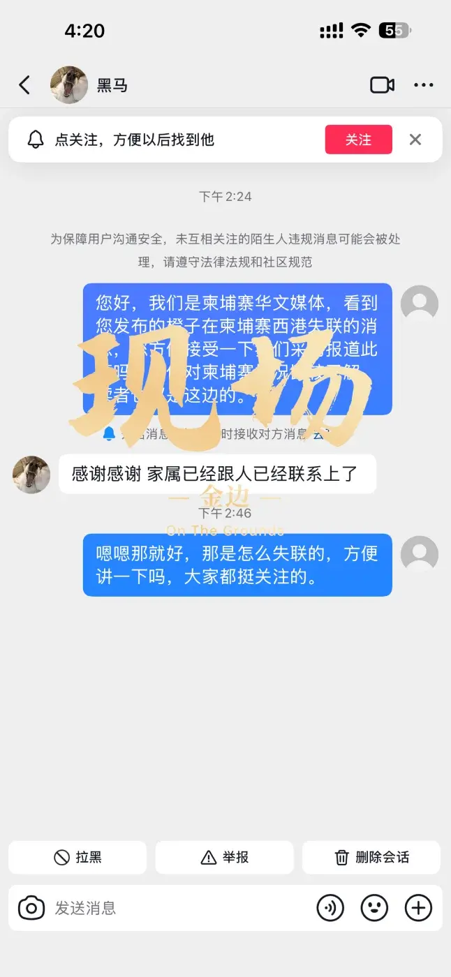 บ่ายวันนี้ [ตามเวลาท้องถิ่น] สื่อดังอย่างพนมเปญไลฟ์ พยายามติดต่อครอบครัวของ "ออเรนจ์" แต่ไม่สำเร็จ หลังจากติดต่อ "เฮย ม่า" เพื่อนของเธอ ซึ่ง "เฮย ม่า" ก้ได้ส่งข้อความมาว่า "ครอบครัวของเพื่อนผม ได้ติดต่อใครบางคนไปแล้ว ซึ่งผมก็ไม่รู้ว่าใคร?"