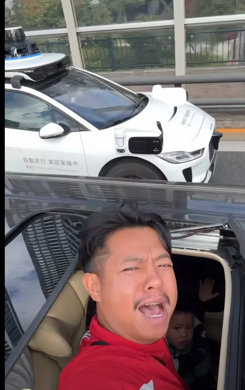 ที่เขาเปิดซันรูฟ และเอาหัวยื่นออกมาบนทางด่วนที่ญี่ปุ่น
