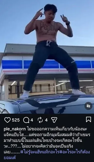 "เปิ้ล นาคร" เห็นคลิป "แจ็ก แปปโฮ" แล้ว!..ถามกลับโซเชียลถ้าเขมรทำแบบนี้ในไทยจะเกิดอะไรขึ้น? เรียกว่ากลายเป็นประเด็นขึ้นมาทันที หลังยูทูบเบอร์ชื่อดังอย่าง "แจ็ก แปปโฮ" ปีนหลังคารถหน้าร้านสะดวกซื้อ Lawson พร้อมฉากหลังที่เป็นวิวภูเขาไฟฟูจิ ประเทศญี่ปุ่น และยังถอดเสื้อเต้นอย่างเมามันส์โดยไม่ใครสายตาใคร แม้แต่บรรดานักท่องเที่ยวที่ผ่านไปผ่านมา งานนี้ก็ถูกบรรดาชาวเน็ตไทยเอาทัวร์ไปลงถึงที่ ฟาดแหลกทำแบบนี้มันไม่เหมาะสม และไร้มารยาทในที่สาธารณะ จนทำเอาสื่อดังของญี่ปุ่นได้นำเรื่องดังกล่าวนี้ไปตีข่าว ทำเอาคนไทยต้องขายหน้าไปทั้งโลก
