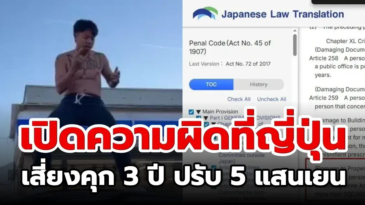 กรณีของอินฟลูเอนเซอร์ชาวไทย แจ็กแปปโฮ ที่ถอดเสื้อเต้นบนหลังคารถที่ลานจอดรถร้าน Lawson ล่าสุดเพจ JapanSalaryman วิเคราะห์ว่าพฤติกรรมนี้เข้าข่ายความผิดทางกฎหมายที่สามารถเอาผิดได้จริง