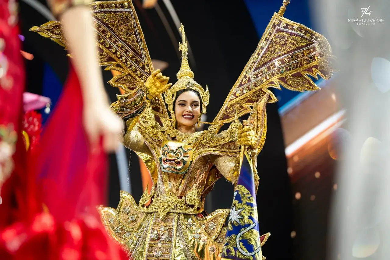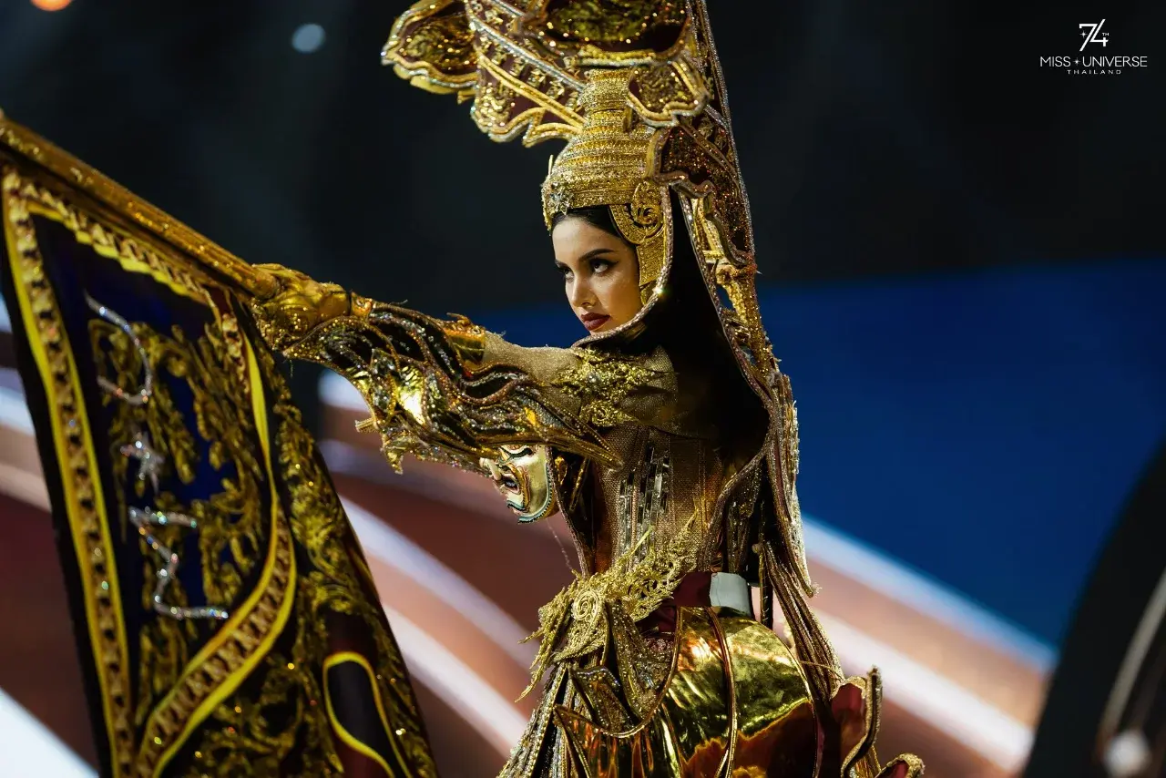 "วีนา ปวีนา ซิงห์" Miss Universe Thailand 2025 เป็นตัวแทนจากประเทศไทยปรากฏตัวในชุดประจำชาติ "สุวรรณรากษา พญายักษ์พิทักษ์สุวรรณภูมิ" ออกแบบและตัดเย็บโดย อาร์ทอัครัชเนรมิตศิลป์ ได้รับแรงบันดาลใจจาก พญายักษ์ในตำนานไทย ผู้เป็นสัญลักษณ์แห่งความเข้มแข็ง เกียรติยศ และการปกป้องแผ่นดินไทย พญายักษ์ถือกำเนิดขึ้นเพื่อรักษารากเหง้าแห่งวัฒนธรรมและอารยธรรมไทย ออกแบบด้วยสีทองเจิดจรัส สะท้อนความรุ่งโรจน์และความอุดมสมบูรณ์ของภูมิปัญญาไทย การสวมชุดนี้จึงเปรียบเสมือนการสวม เกราะแห่งศักดิ์ศรีและพลังปกป้อง ของพญายักษ์ผู้ทรงพลัง ผู้เฝ้าดูแลและคุ้มครองประเทศไทยตราบนานเท่านาน
