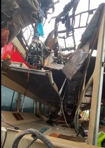 เกิดเหตุรถบัสสองชั้นของเขมรพุ่งตกแม่น้ำ