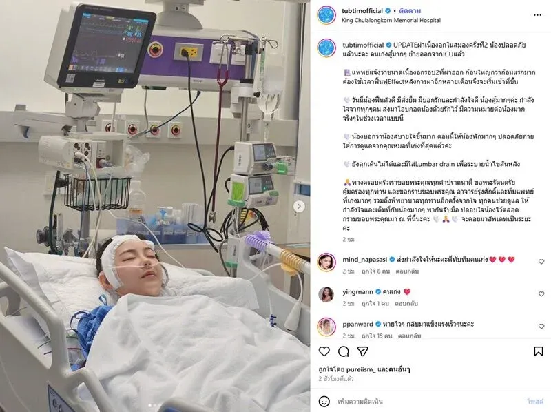 ทางครอบครัวได้ขอบพระคุณทุกกำลังใจที่ส่งมาให้ รวมถึงทีมแพทย์และพยาบาลที่ดูแลอย่างเต็มที่ พร้อมทั้งอัพเดตว่าจะคอยแจ้งความคืบหน้าอย่างต่อเนื่อง