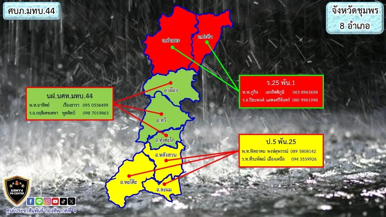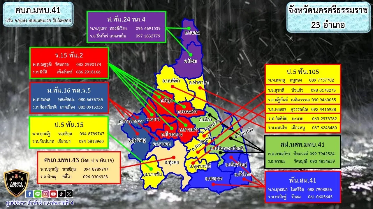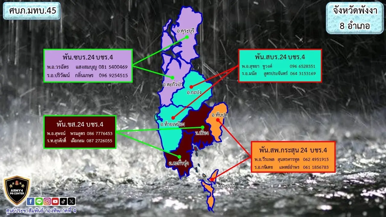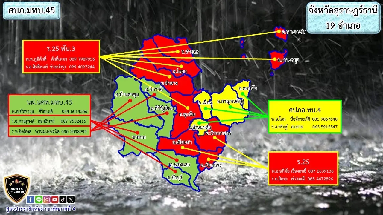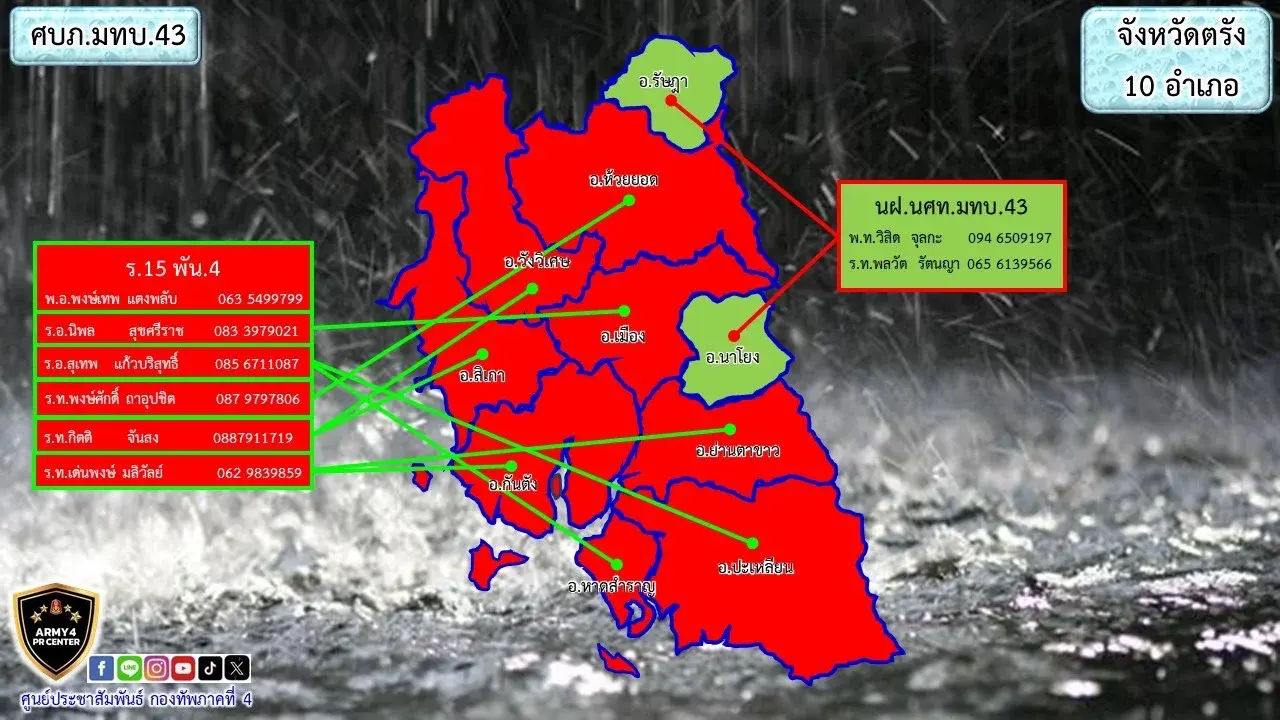 ศบภ.ทภ.4 เตือนพื้นที่เสี่ยง! พร้อมเข้าช่วย เผยเบอร์โทรฉุกเฉินทุกพื้นที่